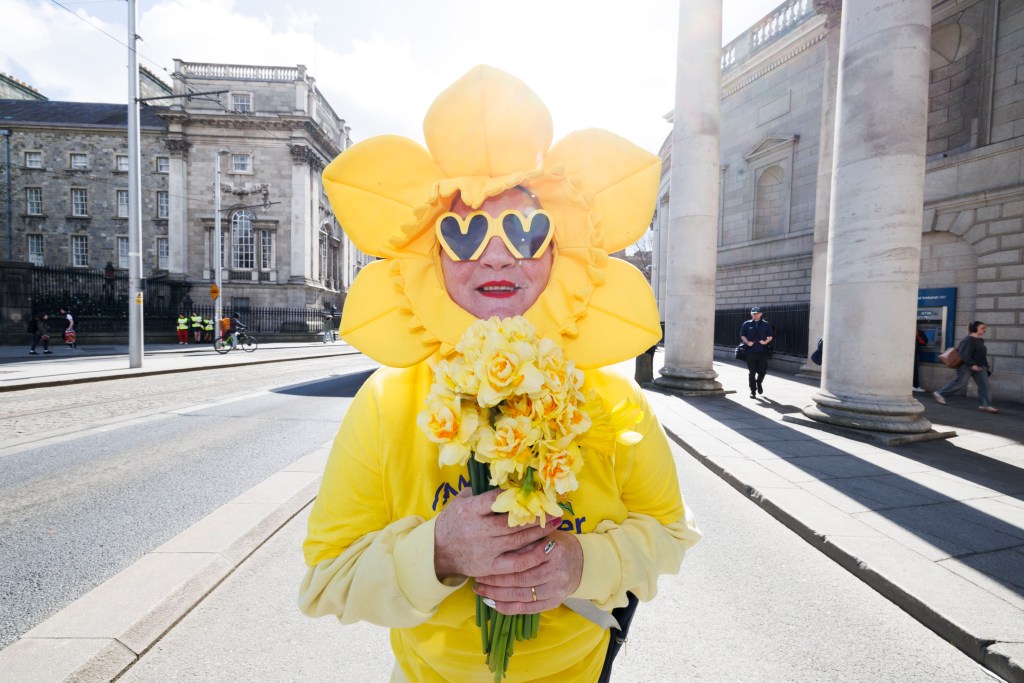 Repro FreE: 28/03/2025 Marcia Miranda pictured as an army of volunteers and fundraisers helped turn Ireland daffodil yellow as they stood together against cancer – to bring hope, provide support and drive progress. The Irish Cancer Society needs to raise €6 million to meet record demand for their free services and grow their investment in lifesaving research. You can donate at cancer.ie/daffodilday Picture Andres Poveda