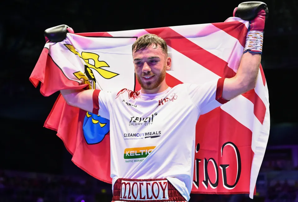 The unbeaten boxer Kieran Molloy, who hails from Oughterard, has his eyes set on a fight in his home city of Galway. Molloy, who has declared his dream of fighting this summer in Galway with one particular venue in mind. Deacy Park, the home of Galway United, is Molloy’s dream venue, and it could become a real possibility. The unbeaten boxer enjoyed glory in Galway two years ago when he defeated Fernando Mosquera on points in Leisureland, Salthill. The 26-year-old, who has a record of 10-0, is hungry to have another local fight. Molloy, who now trains in England, is known to be a Galway United follower, and prior to every fight, he displays the Galway flag with emotion.